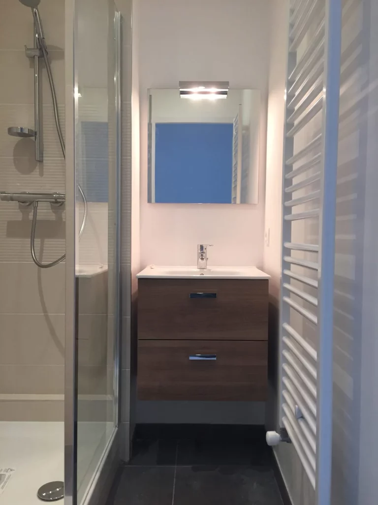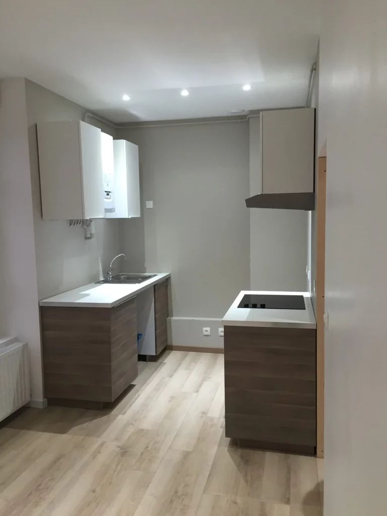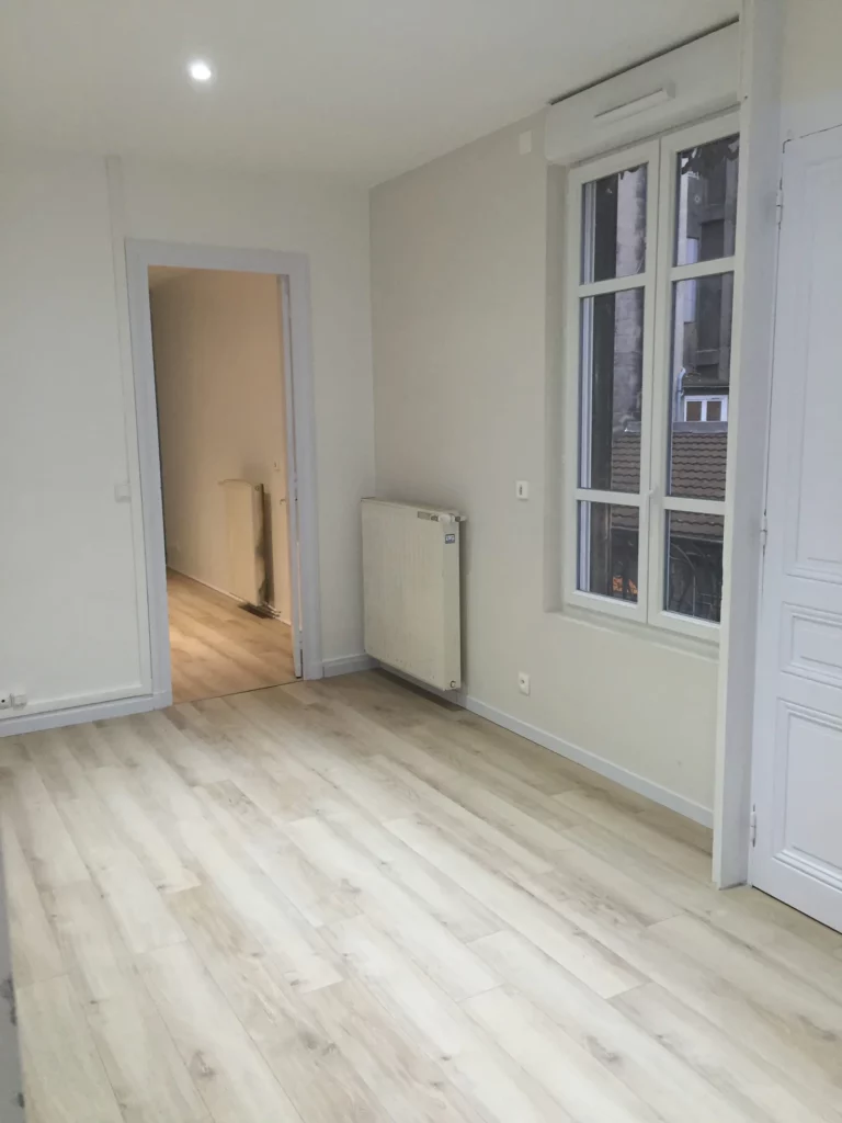 Présentation de l’opération : • Création des 2 chambres et 1 salle de bains • Rénovation des menuiseries et escalier • Rénovation des murs et plafonds- Sols • Création d’un réseau de chauffage GAZ Avant projet : Après travaux :